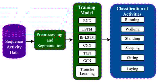 - El-Adawi, E.; Essa, E.; Handosa, M.; Elmougy, S. Wireless body area sensor networks based human activity recognition using deep learning. Sci. Rep. 2024, 14, 2702. [Google Scholar] [CrossRef]