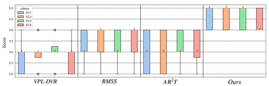The scoring statistical results of the user study are presented in Figure 10. The scoring results indicate that medical experts unanimously consider our method to be the most ideal visualization solution. They confirmed that our approach is sufficiently effective for application in surgical planning. The experts consistently rated our method highly and expressed a strong willingness to use it for future surgeries. While realistic rendering technologies may not enable capabilities beyond those of traditional rendering techniques, their enhanced realism and rendering details significantly improve doctors’ comfort and spatial awareness during observation. Some experts noted that higher levels of realism in the visualization make them feel more at ease, find the visuals more aesthetically pleasing, and enable them to focus more on diagnosing and planning around the lesion. To sum up, the method proposed in this paper demonstrates superior applicability for surgical planning compared to existing methods.