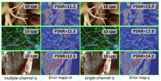 - Iglesias-Guitian, J.A.; Mane, P.; Moon, B. Real-time denoising of volumetric path tracing for direct volume rendering. IEEE Trans. Vis. Comput. Graph. 2020, 28, 2734–2747. [Google Scholar] [CrossRef]