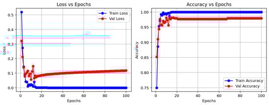The CNN architectures selected for feature extraction include both widely recognized pretrained models—VGG16 [], DenseNet121 [], InceptionV3 [], and MobileNetV2 [] and a custom CNN specifically designed for this study (see Table 1).