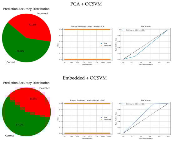 Traditional handcrafted feature-based methods (Histogram, Gradient, FFT, Hartley) and classical dimensionality reduction techniques like PCA and Embedded feature extraction generally showed poor performance in both detection accuracy and sensitivity. Their inability to capture intricate data structures likely led to low discriminative power, consistent with the relatively poor ROC and prediction-actual label comparisons.