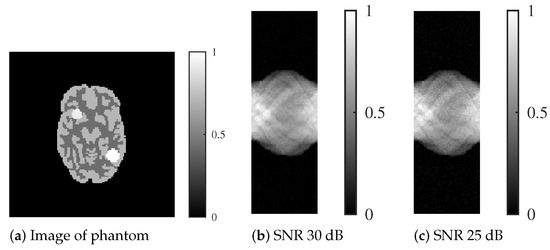 5.1. Numerical Example 1 (Shepp–Logan Phantom)