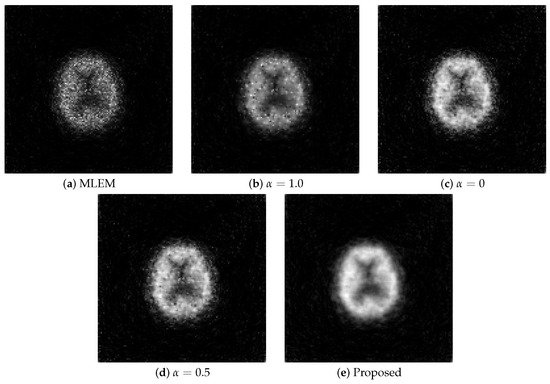 - Shepp, L.A.; Vardi, Y. Maximum likelihood reconstruction for emission tomography. IEEE Trans. Med. Imaging 1982, 1, 113–122. [Google Scholar] [CrossRef]
