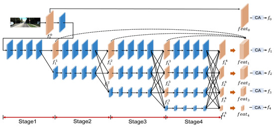 HRNet [16] parallelizes feature maps of different resolutions, and adds interactions to feature maps of different resolutions in forward convolution stages. Inspired by the framework, we adopt a multi-stage feature attention network (MSFAN) instead of the classic U-Net structure including a multi-stage details enhancement module. As shown in Figure 2, the network has four data streams and four stages, each of which fuses information between different scales, while extracting the feature maps, we observed a significant improvement in other methods using ResNet as the backbone.