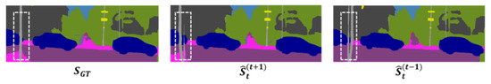 For three consecutive images , and , we have corresponding semantic images , and . By the method of view synthesis, we obtain the synthesized semantic maps corresponding to , which are denoted as and . As shown in Figure 5, semantic inconsistency is mainly distributed at the boundary of the image, which is caused by the depth estimation task and the pose prediction task. It can be used as a self-supervised signal to optimize the training of the whole network.