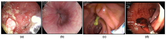 - Lee, J.; Oh, J.; Shah, S.K.; Yuan, X.; Tang, S.J. Automatic classification of digestive organs in wireless capsule endoscopy videos. In Proceedings of the 2007 ACM Symposium on Applied Computing, Seoul, Republic of Korea, 11–15 March 2007; pp. 1041–1045. [Google Scholar]