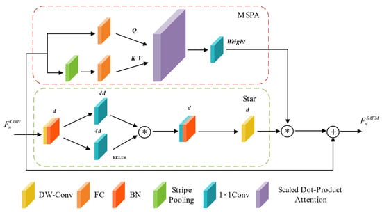 In SAFM, a dual-branch structure is adopted: one branch incorporates strip pooling attention (MSPA), while the other (Star branch) captures complementary spatial information. We implemented the following three fusion strategies, as illustrated in Figure 14.
