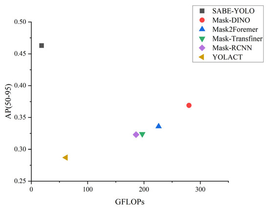 The proposed SABE-YOLO method outperforms existing mainstream instance segmentation approaches across multiple performance metrics. It demonstrates superior feature modeling and segmentation capabilities, particularly in industrial scenarios involving slender weld structures, blurred boundaries, and complex shapes. Experimental results show that the AP(50–95) of SABE-YOLO reaches 46.3%, representing a 3% improvement over YOLOv8n-seg, while maintaining similar parameter count and computational complexity. This reflects a favorable balance between performance and efficiency.