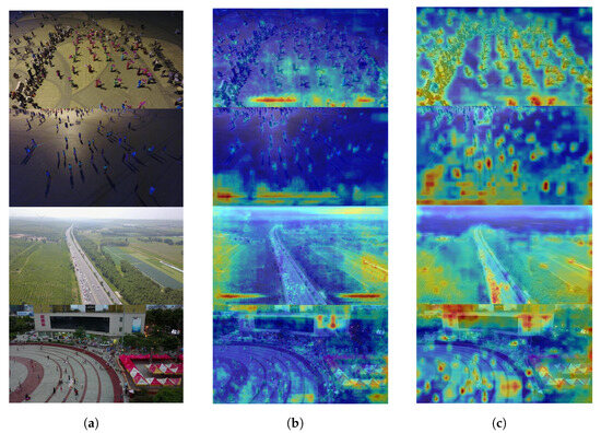 Heat maps: (a) original images, (b) YOLOv8s, and (c) MSC-YOlO.