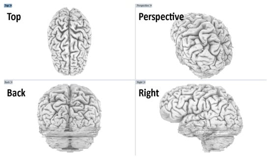 Here we provide a detailed description of the complex process used to digitally produce the video (Figure 1). We also report software and parameter settings in Table S1 of Supplementary Materials. MRI data from a healthy adult were acquired from an open-source platform called IMAIOS [24]. We used these scans to build the gross brain 3D model. The pipeline also works with other public acquire MRI datasets and with Freesurfer processed volumes [25]. We utilized Fiji, an open-source application that offers a wide range of libraries and plugins specifically relevant to biological research [26]. In our study, Fiji was primarily used for stacking MRI scans to create a 3D model based on the 2D scans. This 3D model is then exported as a mesh model, composed of vertices, edges, and faces, combined to form scalable 3D objects.