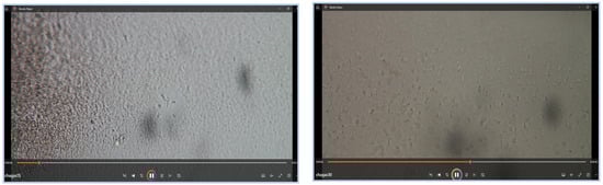 Examples of raw video data for parasite detection. This figure displays two representative frames from the dataset of microscopic videos. These frames illustrate the type of raw data—including background noise and varying lighting—that is used as input for the automated parasite detection system.