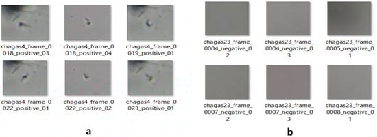 The dataset used in this study comprises a total of 48 microscopic video sequences, each containing biological samples potentially infected with T. cruzi parasites. These videos exhibit a wide range of conditions, including variations in background textures, lighting, image resolution, and parasite density. The diverse nature of the dataset ensures that the developed detection model can generalize across different real-world scenarios and environmental conditions observed in microscopic imaging. Figure 6 presents representative frames from the video dataset, illustrating the diversity of imaging conditions observed.