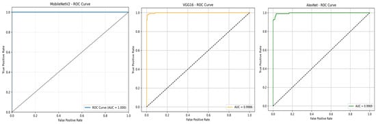 MobileNetV2 has also proven highly effective in related biomedical tasks. Prior studies report validation accuracies up to 99.9% [] in malaria parasite detection, outperforming deeper models such as DenseNet, ResNet152V2, and NasNetLarge.