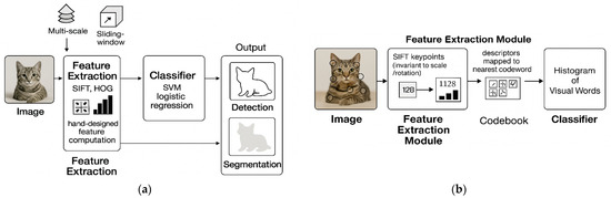 Handling invariances with traditional feature extraction using: (a) handcrafted features; (b) Bag of Words (BoW).