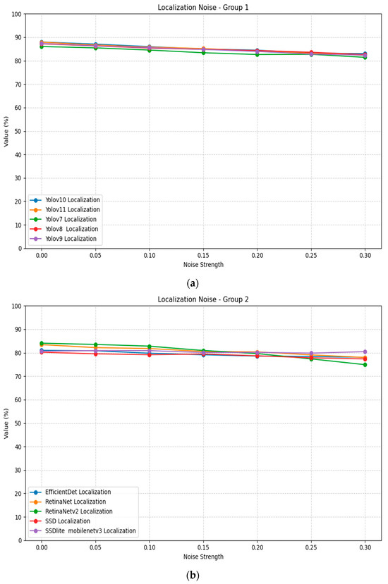 This transformation preserved the original spatial and structural layout of the images and did not require any modification to ground truth bounding boxes. For example, the same annotations provided by the COCO dataset were used for performance evaluation across all noise levels. Inference was performed on each noise-augmented image using a pre-trained model. The model outputs were compared against the ground truth annotations.