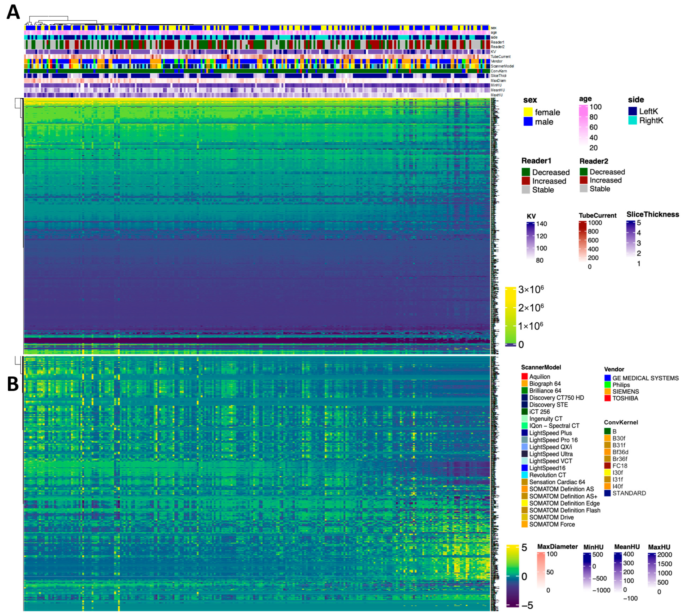 Radiomics features were extracted using the commercial research prototype. The software automatically generates standardized first-order, texture, and higher-order features from segmented stone volumes, with feature definitions, extraction parameters, and feature combinations predefined by the vendor and not user-modifiable.