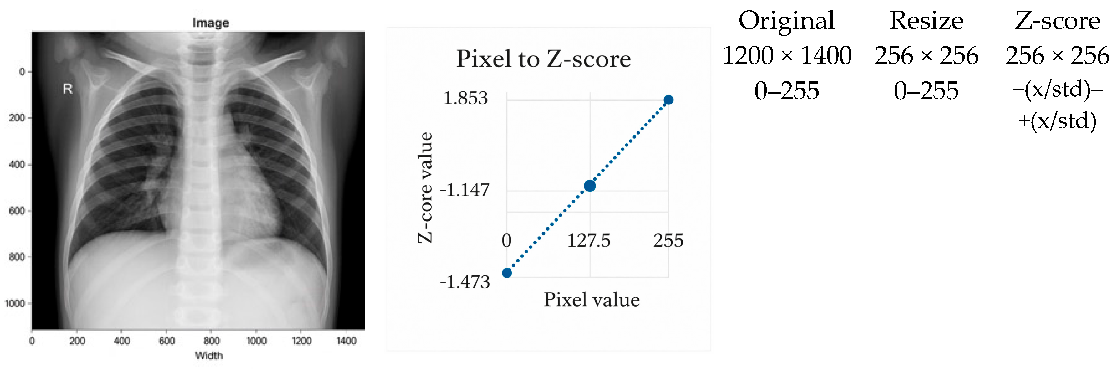 | This Study | CDF-guided cropping + histogram standardization | CXR14, CheXpert, MIMIC-CXR | Accuracy, F1 | Joint ROI and intensity standardization for multi-source CXRs | ||||||
