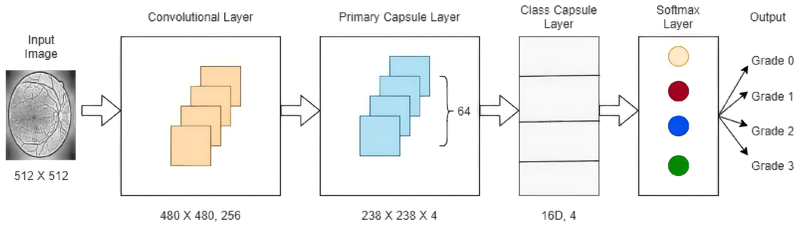 | Kalyani et al. [83] | Diabetic retinopathy detection and classification | Reformed capsNet architecture, avoids pooling layers | Messidor dataset | Accuracy: 97.98% (healthy retina) | Further training on additional datasets recommended for more stages of diabetic retinopathy |