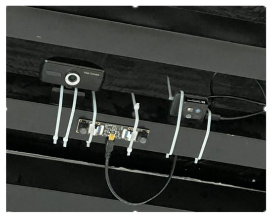Figure 5 shows an image obtained from a 720p 3D Stereo VR USB camera that provides synchronous recording of pairs of images from two sensors for subsequent depth assessment. To form a representative dataset, video streams were recorded at 10-min intervals from 7:00 a.m. to 9:00 p.m. during two collection stages: from August 27 to September 2 and from September 15 to September 18. In total, 712 videos were collected with a total volume of about 226 GB. The data obtained allows for a comprehensive analysis of passenger flows under various lighting conditions and scene density. The 3D Stereo VR USB camera produces two synchronized frames (Left and Right), which are stored as paired images for disparity estimation. These stereo pairs are processed on the server to generate disparity and depth cues, supporting the differentiation of overlapping passengers and improving scene understanding under dense or low-light conditions.