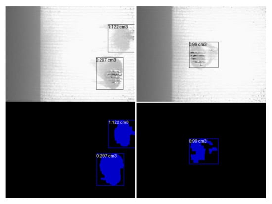 To analyze the video streams received from the depth camera, an algorithm was developed to detect changes and calculate the volumetric characteristics of objects based on depth data. The main idea of the method is to compare the current depth frame () with a reference background image (). The depth difference is calculated as follows: