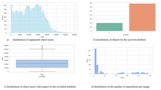 The collection and formation of a dataset for the tasks of detecting people in transport and premises is an important stage in the development of computer vision systems, including passenger detection and counting modules. At the stage of preparing the dataset, about 2000 images were processed, pre-selected using object detection models. This approach made it possible to eliminate irrelevant frames and improve the quality of the source material for subsequent markup. The data was obtained from video recordings made by surveillance cameras installed in urban transport. This set is characterized by a high variability of shooting conditions, that is, differences in lighting, viewing angles, and passenger density, which makes it especially valuable for training computer vision models. A specialized platform was used for annotation [23], which ensures high accuracy and efficiency of the markup process. Each image underwent identification and marking of objects belonging to the “Person” class. The resulting annotations became the basis for training and further optimization of models aimed at solving the problems of detecting and counting passengers in real-world operation of transport systems.