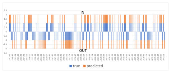 The overall accuracy of the algorithm was 85%. Of the 80 actual inputs, the system correctly identified 70, and of the 84 outputs, it also identified 70. Thus, 140 of the 164 recorded events were accurately recognized, which is clearly shown in Figure 17.