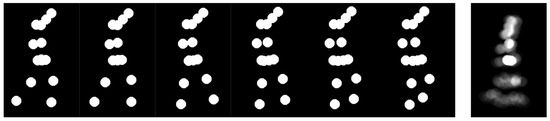 The joint-based GSI represents the skeleton by placing circular markers of radius r at each joint location. As with the line-based variant, these per-frame renderings are aggregated into a single static image, but this representation emphasizes individual joint trajectories rather than body-part connectivity. Figure 4 illustrates the construction process. Different marker radius sizes were tested to analyze the effects of spatial density, compactness, and expressiveness.