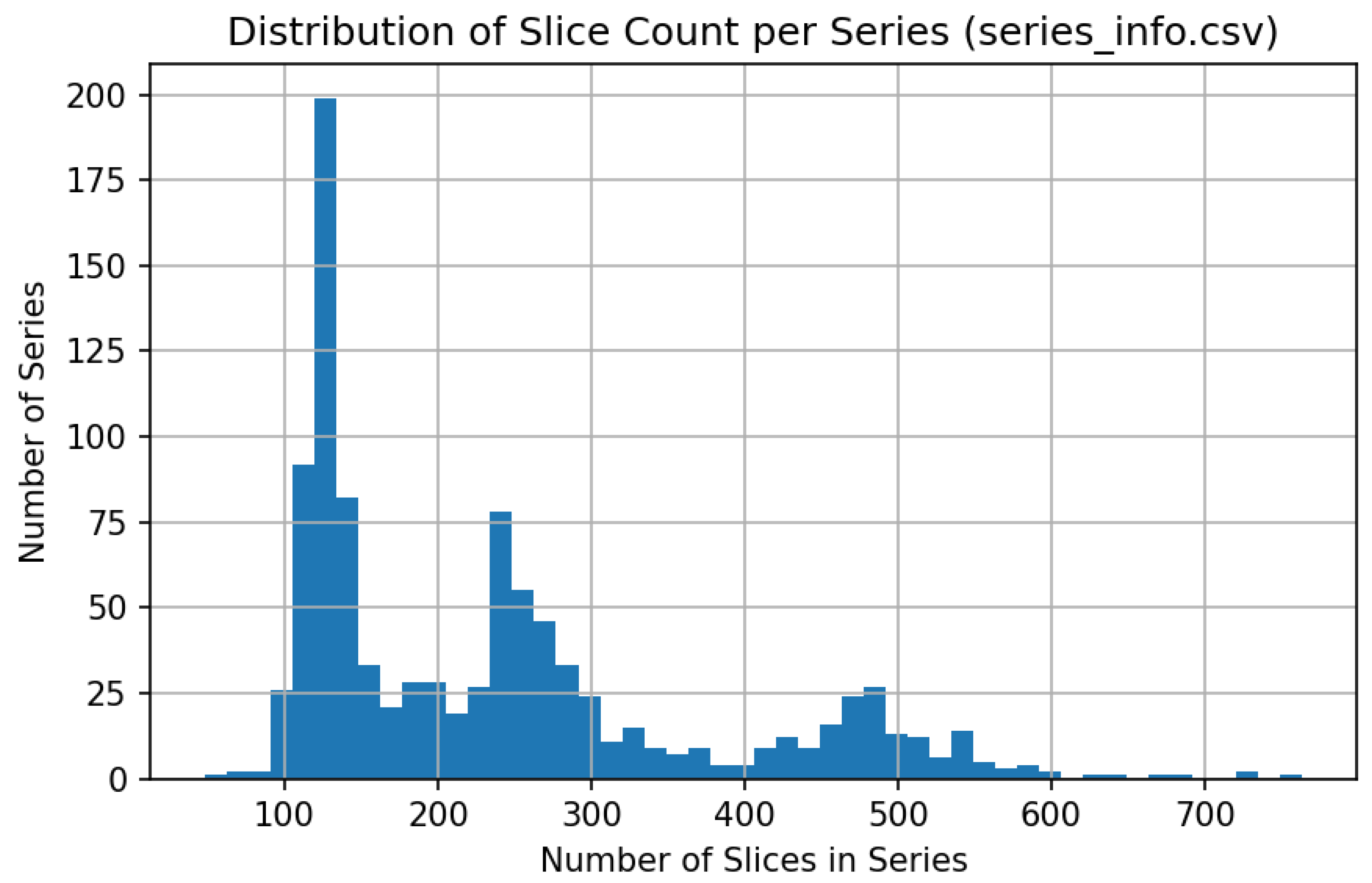 Distribution of slice count per series.