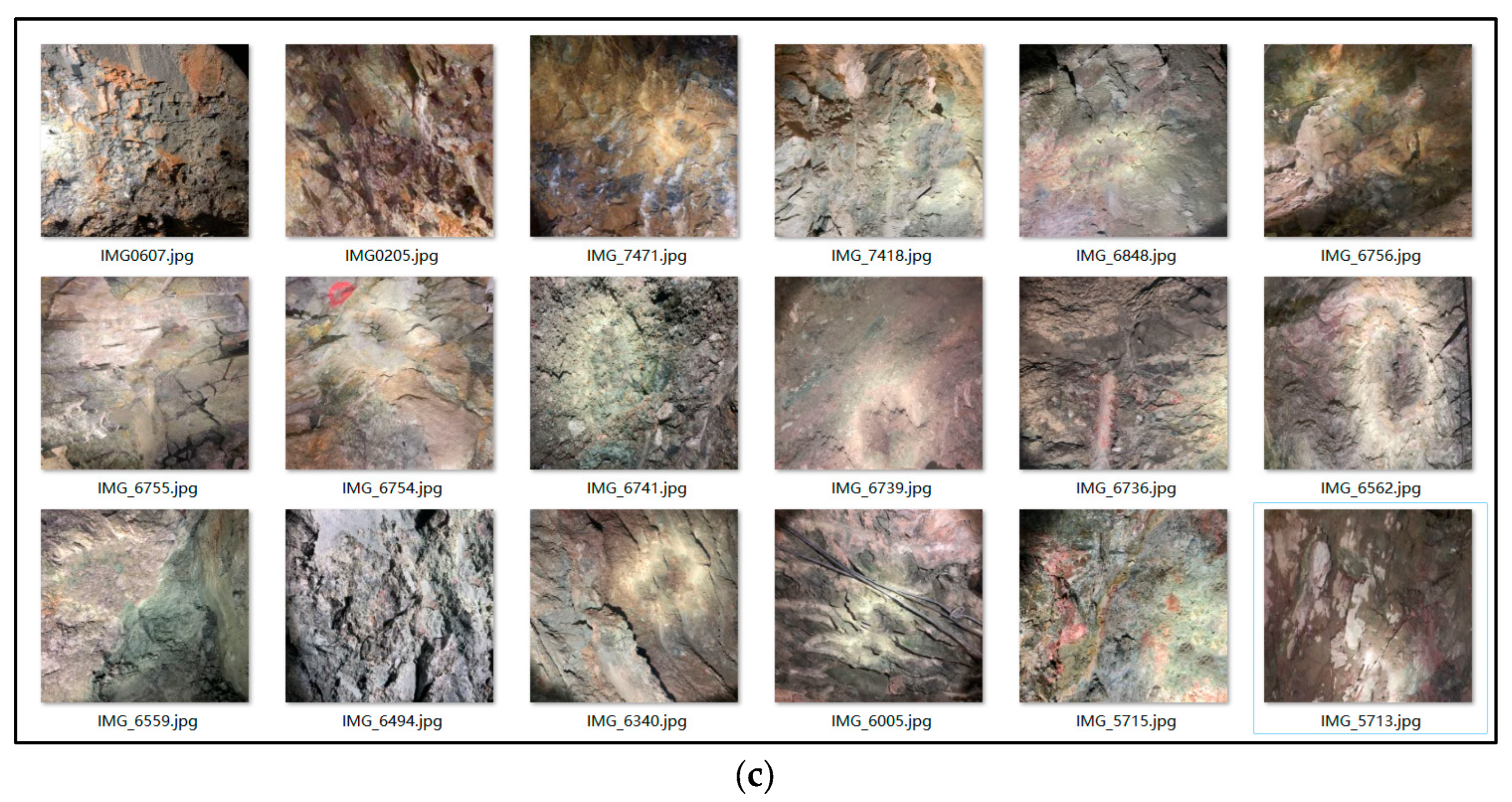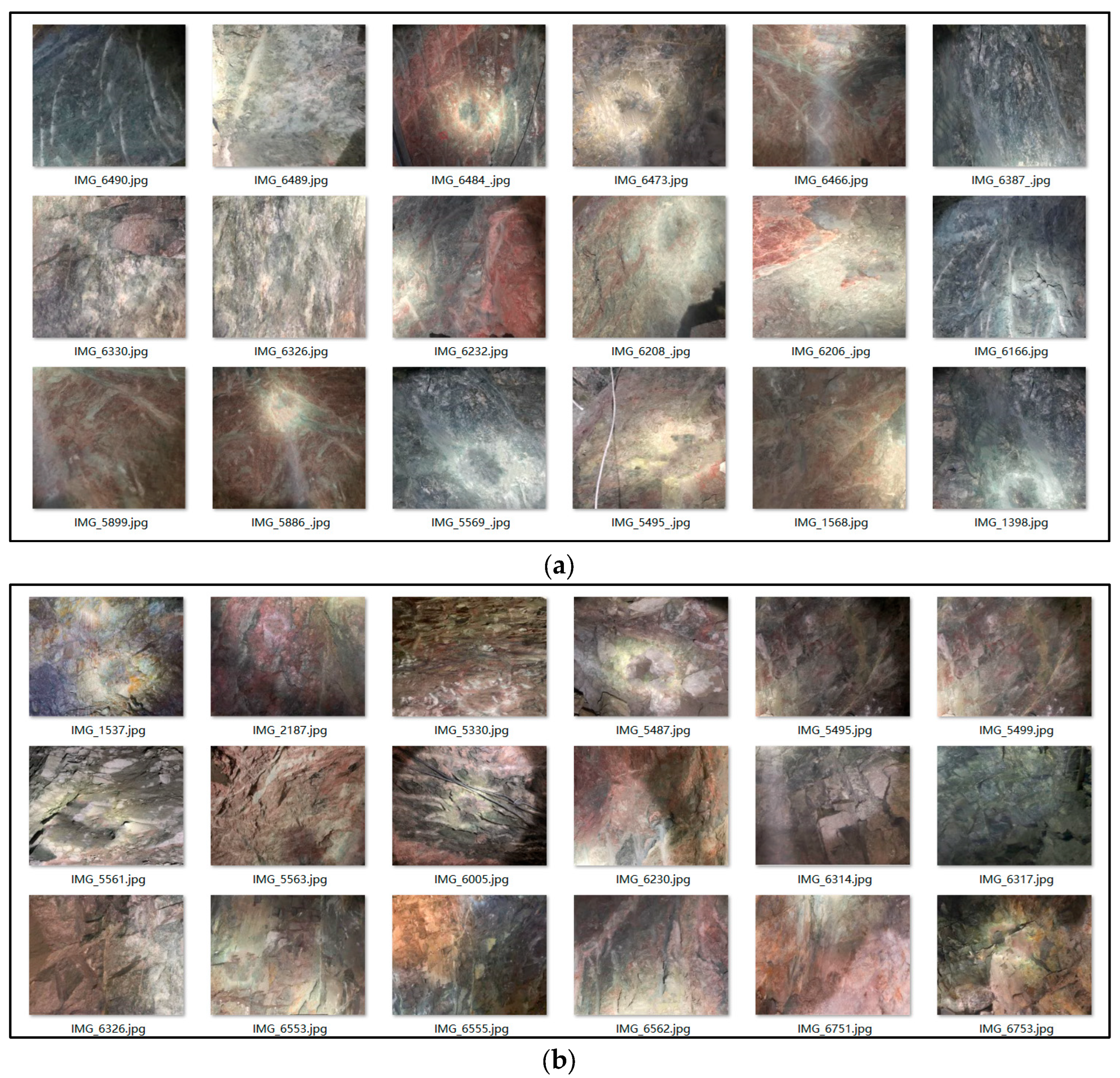 Approximately 3800 images of the surrounding rock were collected, and parts belonging to different rock classes are shown in