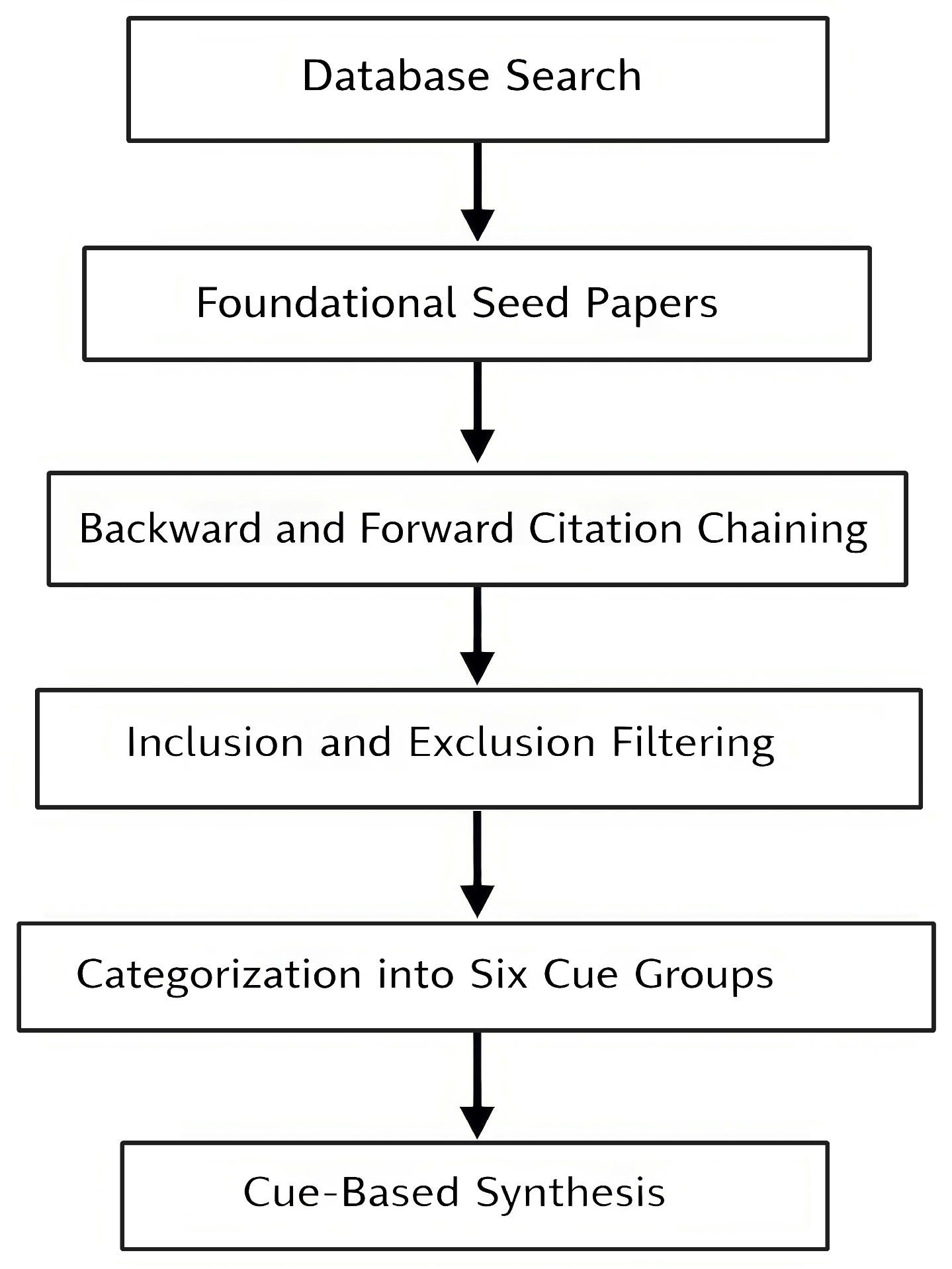 This section defines the six cue categories used as the organizing framework for the literature review. It establishes the conceptual vocabulary for the synthesis that follows, but does not assess the relative weight of each category. Comparative analysis of cue strength, threshold behavior, and workflow relevance is addressed in
