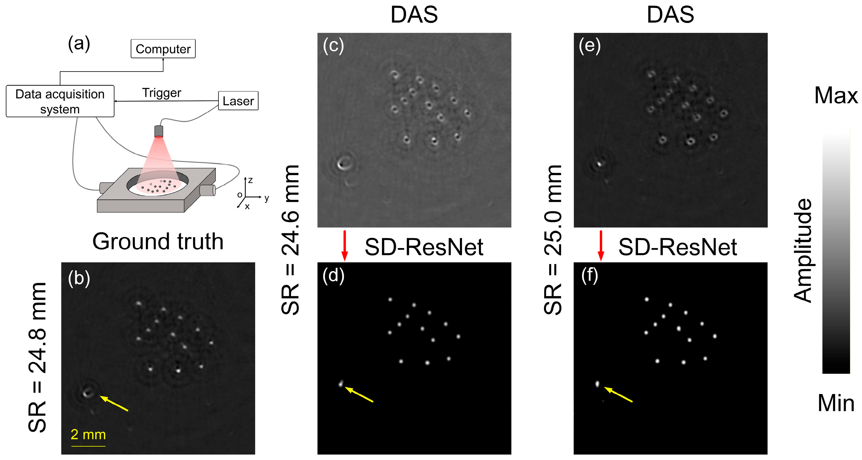 - Kim, J.; Kim, G.; Li, L.; Zhang, P.; Kim, J.Y.; Kim, Y.; Kim, H.H.; Wang, L.V.; Lee, S.; Kim, C. Deep learning acceleration of multiscale super resolution localization photoacoustic imaging. Light Sci. Appl. 2022, 11, 131. [Google Scholar] [CrossRef]