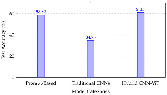 - The prompt-based LLMs (30.37–58.82% accuracy) demonstrated variable performance, depending on the model scale and prompting strategy, but remained limited by the lack of domain-specific visual fine-tuning.