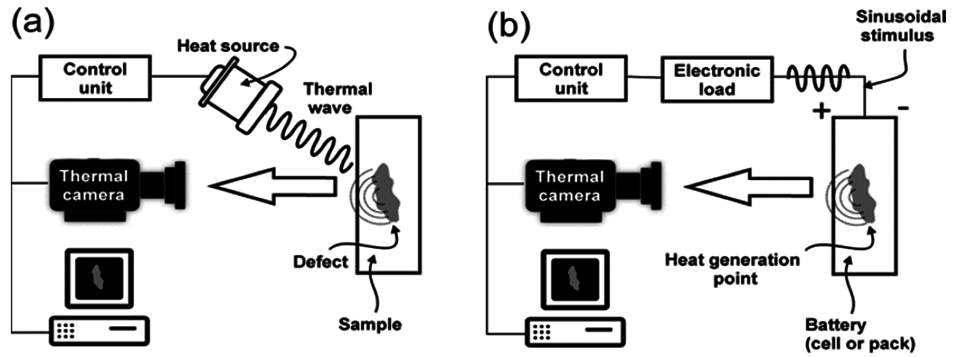- Wang, Z.J.; Li, Z.Q.; Liu, Q. Infrared thermography non-destructive evaluation of lithium-ion battery. Proc. SPIE 2011, 8193. [Google Scholar] [CrossRef]