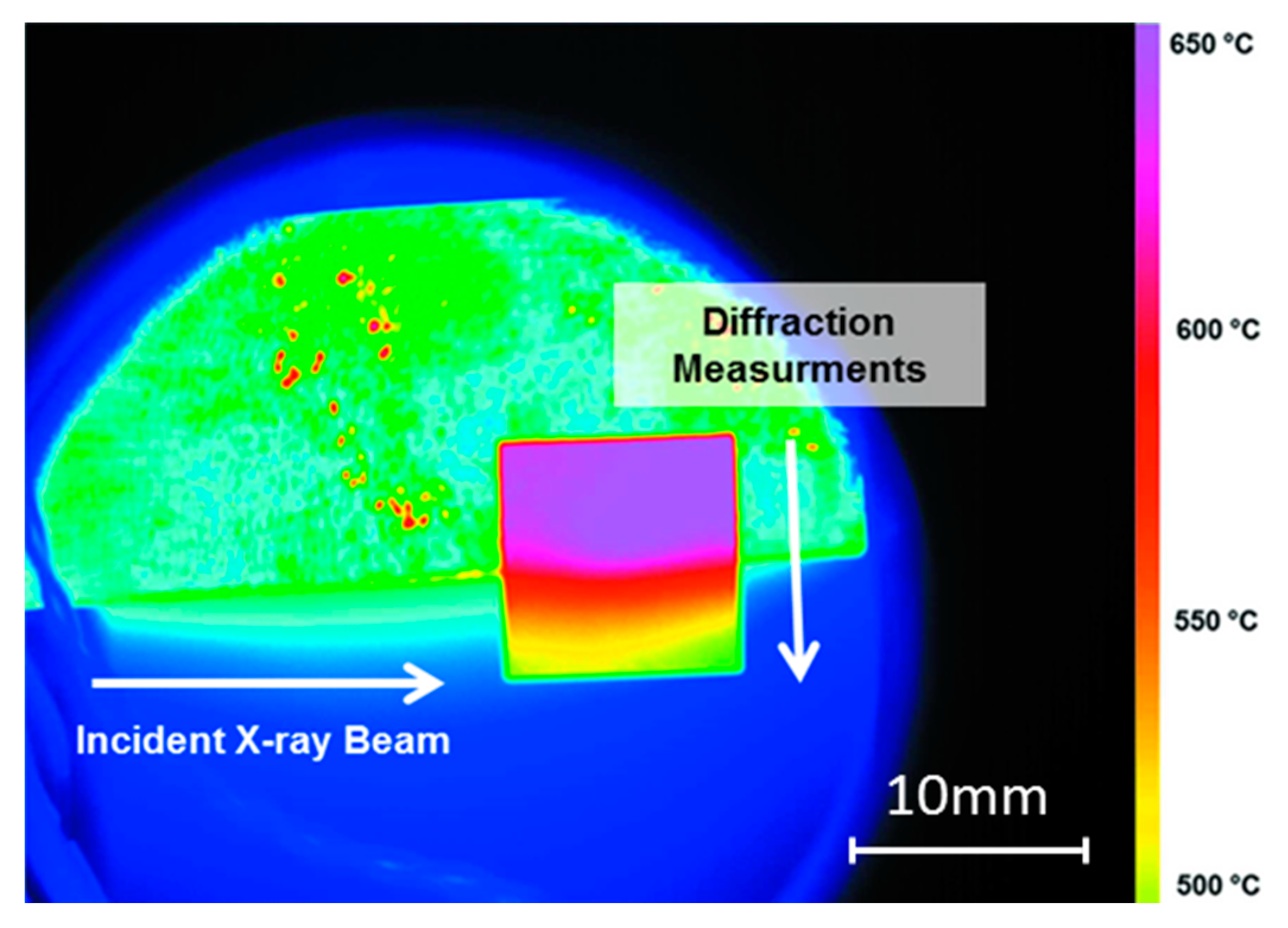 - Robinson, J.B.; Brown, L.D.; Jervis, R.; Taiwo, O.O.; Millichamp, J.; Mason, T.J.; Neville, T.P.; Eastwood, D.S.; Reinhard, C.; Lee, P.D.; et al. A novel high-temperature furnace for combined in situ synchrotron X-ray diffraction and infrared thermal imaging to investigate the effects of thermal gradients upon the structure of ceramic materials. J. Synchrotron Radiat. 2014, 21, 1134–1139. [Google Scholar] [CrossRef] [PubMed]