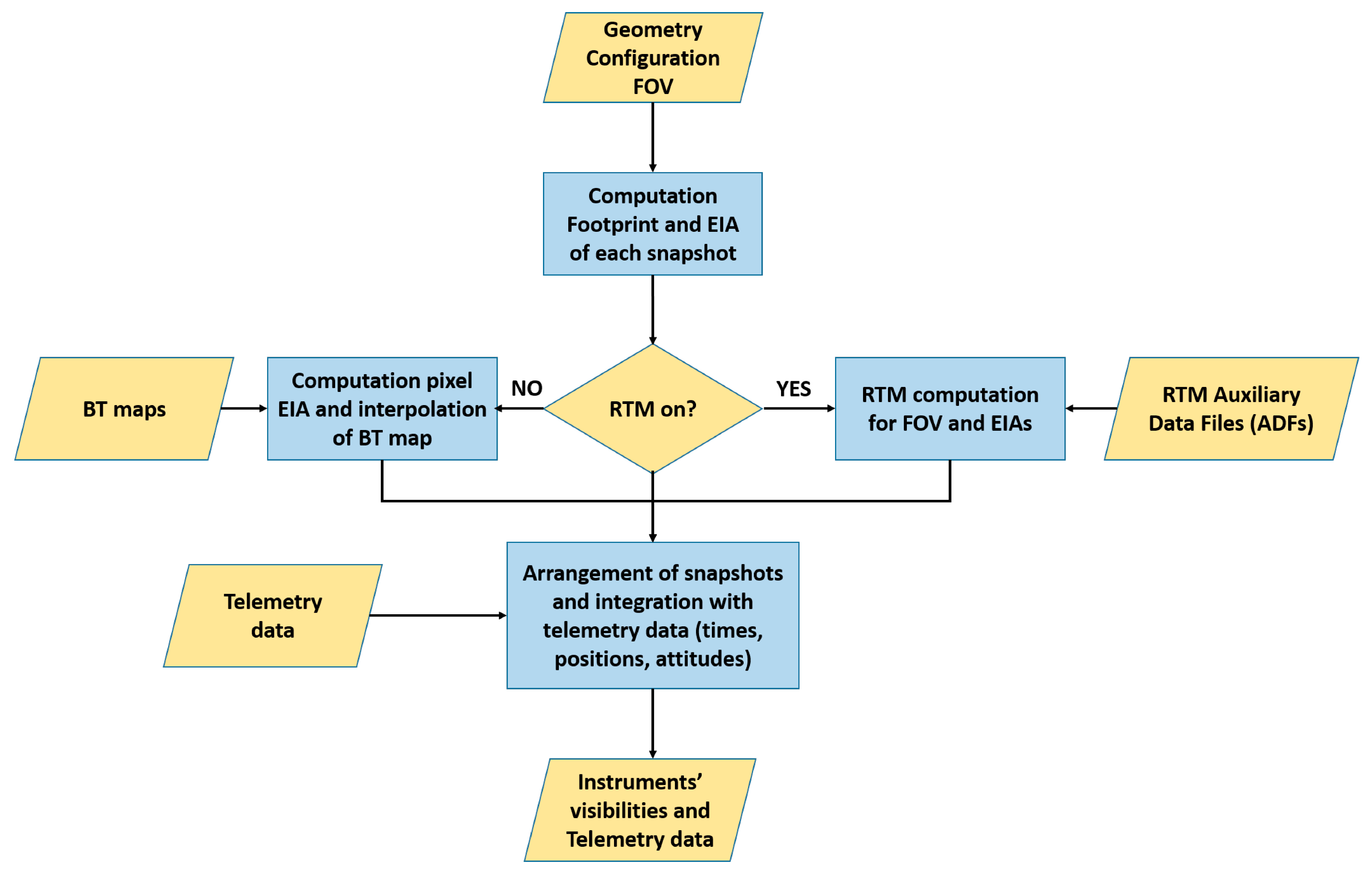 - Snapshot Mode to process a single BT snapshot, corresponding to the instrument elementary integration period, in order to compare against the reference BT maps,