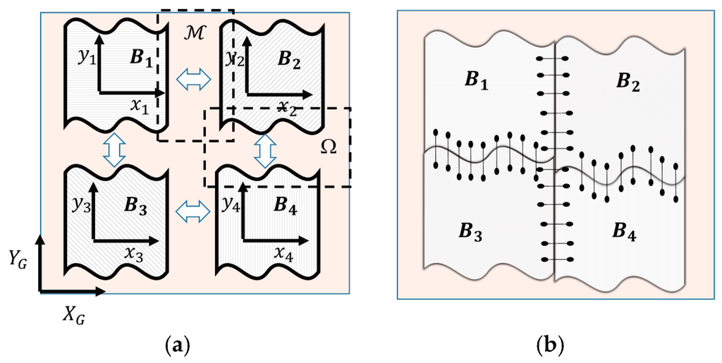 - Warp the patches at their spatial boundaries—for example, regions Ω and in Figure 3a—by selecting a neighboring set of control points for each boundary. Then, reconstruct the boundaries by using adequate method from Section 2.3.1, or the LSE-TPS algorithm that we described in Section 2.3.3. Figure 3b illustrate warping of multiple patches into a single image.