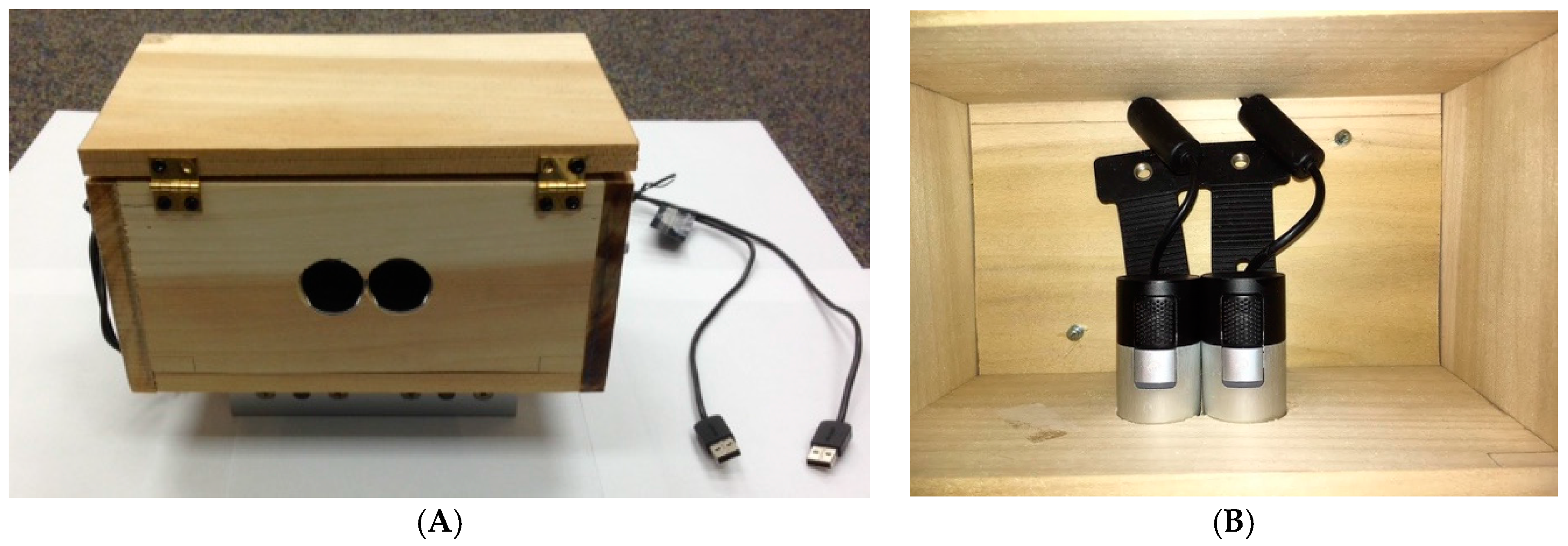 In this paper, two Microsoft LifeCam Studio web high definition (HD) cameras (1080 p) were assembled inside a wooden box, and mounted approximately in parallel, with the baseline at 30 mm, as shown in Figure 1. To acquire images, they were connected to a Lenovo IdeaPad Y500 laptop with a NVIDIA GeForce GT650M GPU, which can be used in parallel computation to accelerate the computing time in feature points detection and matching.
