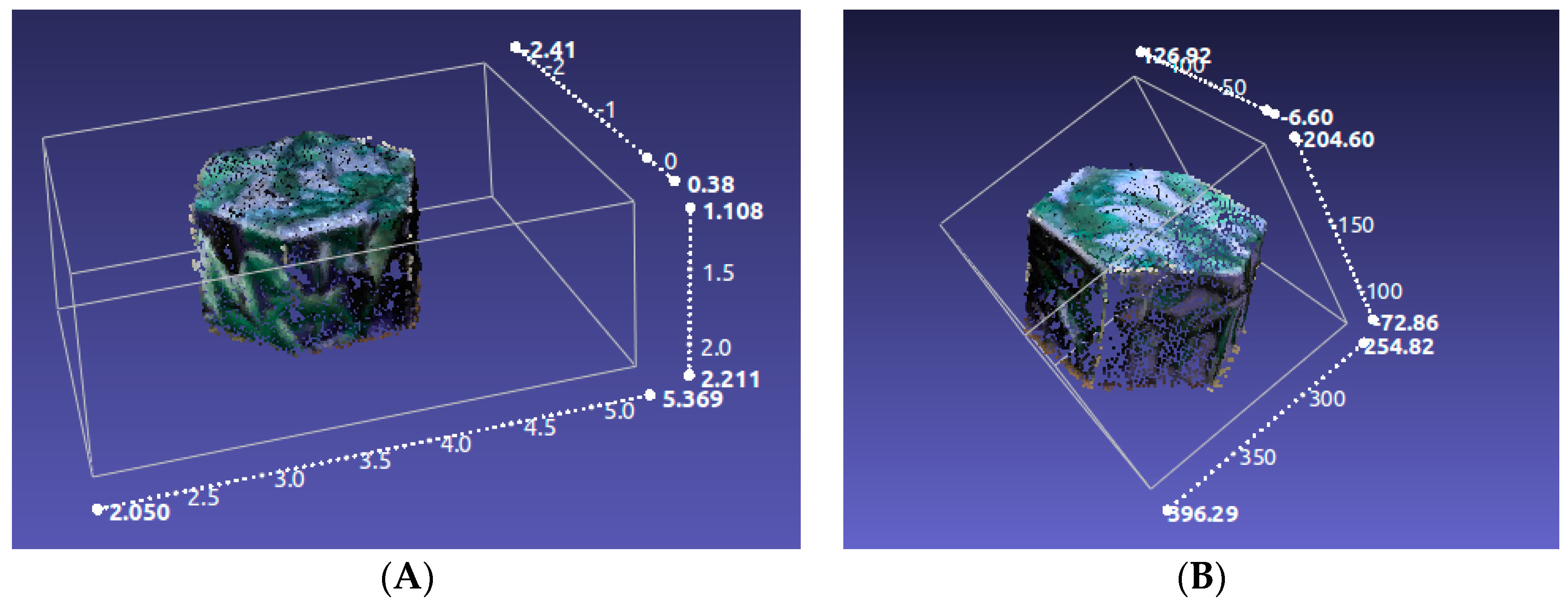 Wu [37] provided a fast method called visual structure from motion (SfM) method to accelerate the feature points’ detection, matching, bundle adjustment, and 3D reconstruction. Wu’s method was applied in this paper.