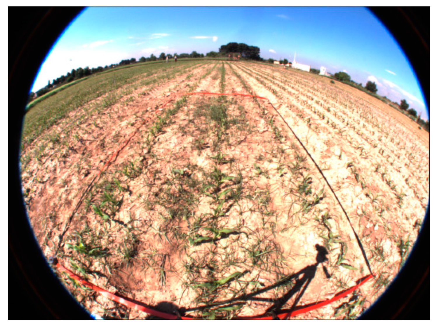 - Crop row detection: sometimes a fixed number of crop rows are to be detected for crops and weeds discrimination for site-specific treatments or precise guiding [5,7,10,11,12,13,14,15,16]. Depending on the number of crop rows to be detected or to follow during guidance, the vision system must be conveniently designed such that the required number of rows, considering the inter crop row spaces, can be imaged with sufficient image resolutions.