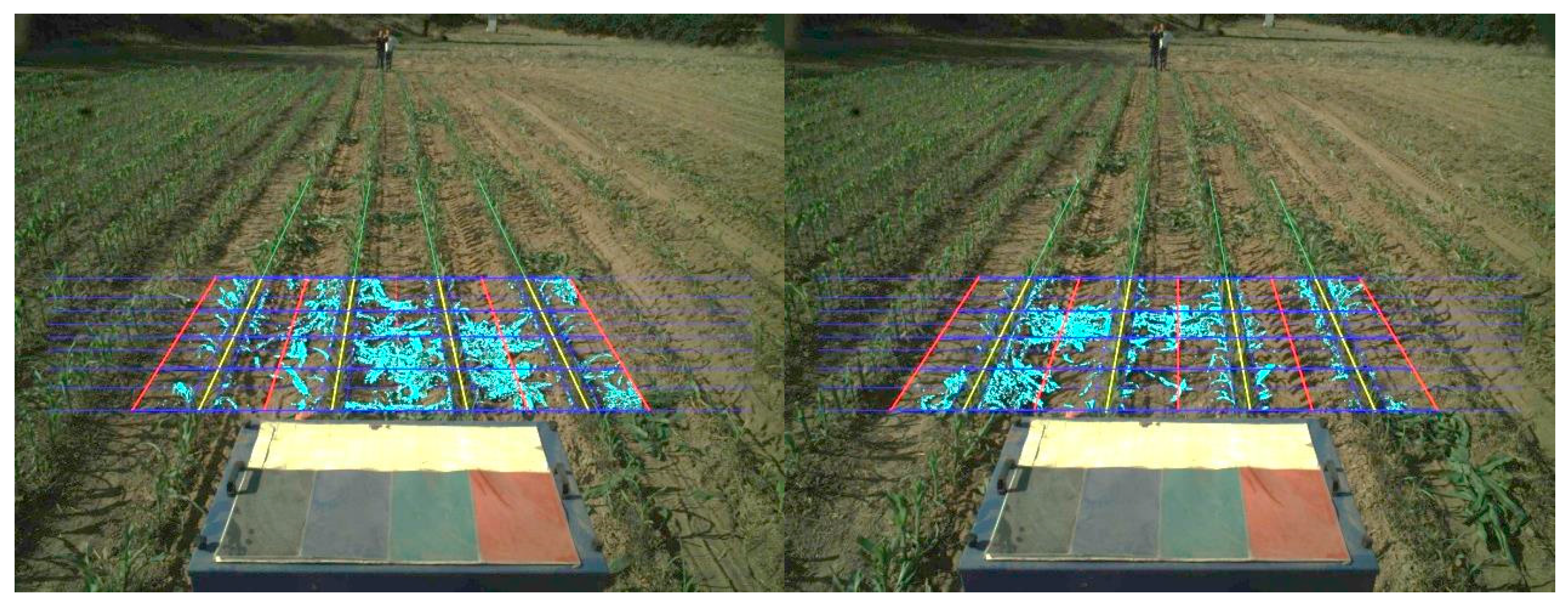 - Tellaeche, A.; Burgos-Artizzu, X.P.; Pajares, G.; Ribeiro, A. A new vision-based approach to differential spraying in precision agriculture. Comput. Electron. Agric. 2008, 60, 144–155. [Google Scholar] [CrossRef]