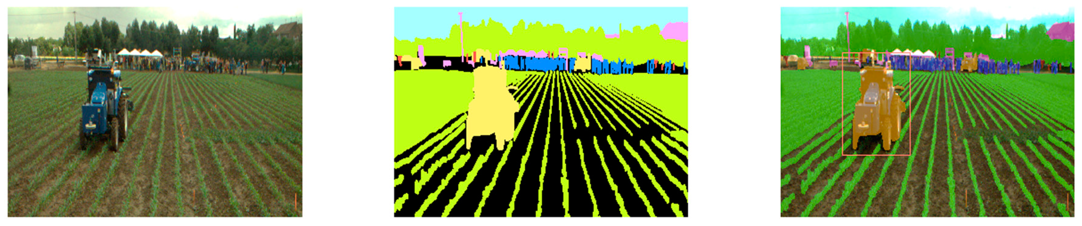 - Campos, Y.; Sossa, H.; Pajares, G. Spatio-temporal analysis for obstacle detection in agricultural videos. Appl. Soft Comput. 2016, 45, 86–97. [Google Scholar] [CrossRef]