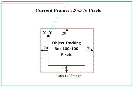 Location of the 140 × 140 pixel size image with reference to the tracked object.