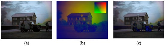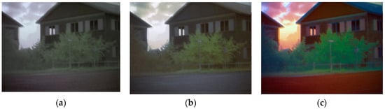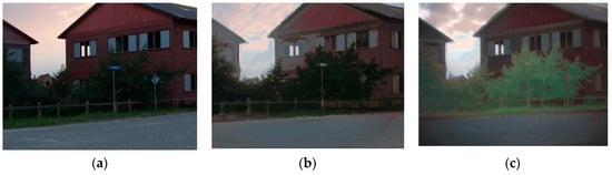 (a) Daytime reference image; (b) Intermediate (result at step 5); and (c) final result (after step 6) of the color-the-night (CTN) fusion method, in which the luminance is determined by the input sensor values (rather than by the corresponding daytime reference).
