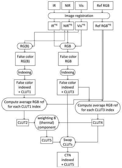 Processing scheme of the CTN sample-based color fusion method.