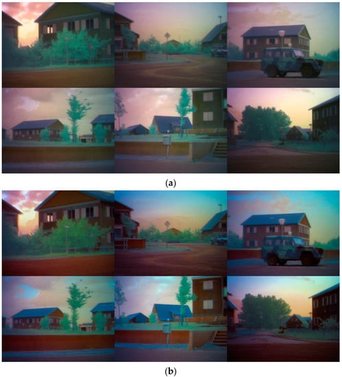 - Zheng, Y.; Dong, W.; Chen, G.; Blasch, E.P. The Objective Evaluation Index (OEI) for Evaluation of Night Vision Colorization Techniques; Miao, Q., Ed.; New Advances in Image Fusion; InTech Open: Rijeka, Croatia, 2013; pp. 79–102. [Google Scholar]