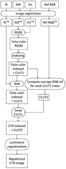 Processing scheme of the CTN2 sample-based color fusion method.