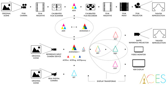 - AMPAS. Academy Color Encoding System (ACES) Documentation Guide; Technical Bulletin TB-2014-001; AMPAS: Beverly Hills, CA, USA, 2014; Available online: j.mp/TB-2014-001 (accessed on 20 September 2017).