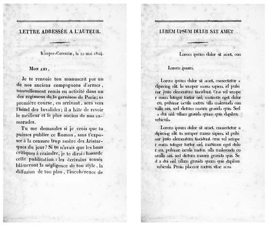 Synthetic document image generation. (Left) original document image. (Right) synthetic document image generated automatically with the random text “Lorem ipsum”. The automatically generated image looks similar to the original one. The result is still perfectible. Here, as the original image suffers from local deformations, the characters extracted to build the font are quite different and may look too random when assembled on the synthetic document. A better font extraction or composition using the context to choose new characters may alleviate this problem.