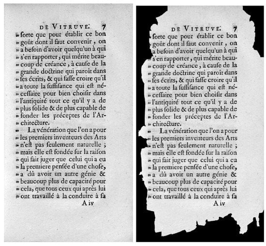 - Kanungo, T.; Haralick, R.M.; Phillips, I. Global and Local Document Degradation Models. In Proceedings of the 1993 2nd International Conference on Document Analysis and Recognition (ICDAR), Tsukuba City, Japan, 20–22 October 1993; pp. 730–734. [Google Scholar]
