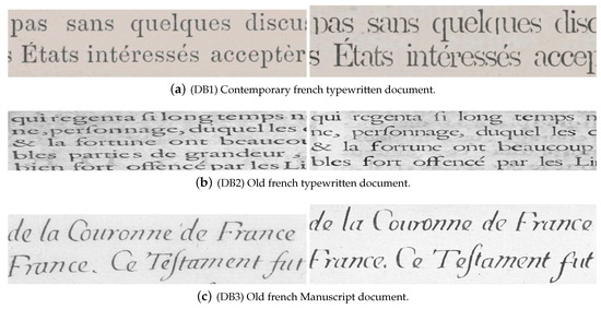 - Perez, D.; Tarazon, L.; Serrano, N.; Castro, F.; Terrades, O.R.; Juan, A. The GERMANA Database. In Proceedings of the 2009 10th International Conference on Document Analysis and Recognition (ICDAR), Barcelona, Spain, 26–29 July 2009; IEEE Computer Society: Washington, DC, USA, 2009; pp. 301–305. [Google Scholar]